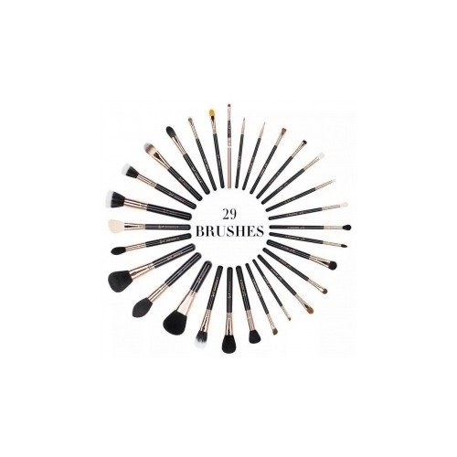 The Extravaganza Collection is a lavish assortment of hand-crafted brushes. The Extravaganza Complete Kit features twenty-nine of our best-selling brushes and comes in a deluxe carrying case, perfect for traveling and storage. Everything you need for a luxurious makeup application. Brushes Included: E05 – Eye Liner: Create smooth and even lines. Use with gel or liquid liners. E10 – Small Eye Liner: Precise application of liner. Use with gel or liquid liners. E15 – Flat Definer: Sharp and precise application. Press product along upper and lower lash lines to create an easy thin liner. Works with gel, liquid or powder products. E20 – Short Shader: Concentrated color application. Apply color onto small areas of the eye such as the outer eyelid. Also use to smudge the lower lash line. E25 – Blending: Controlled blending. Blend colors together onto the lid with added control. Buff out harsh lines for a well blended effect. E30 – Pencil: Soften and smoke out lines. Soften pencil liners along the top and bottom lash lines, add shadow to line the eyes, or use to highlight inner corner of eyes. E35 – Tapered Blending: Controlled application of crease color. Using just the tip of the brush to pick up color, apply directly onto the crease and sweep through. Effect is blended, but defined. E40 – Tapered Blending: Soft blended crease. Using just the tips to apply color, sweep back and forth through the crease for a diffused and blended finish. E45 – Small Tapered Blending: Precise color application onto the crease. Picking up color with just the tip of the brush, apply intense colors to the crease to add depth and dimension to the eye. E50 – Large Fluff: Controlled highlighting. Apply highlighting shades onto the brow bone or upper cheekbone. Gives a soft and blended finish. E55 – Eye Shading: Even application of color. Place color across the whole lid for an even and strong application of product. E60 – Large Shader: Uniformly cover the whole lid with product. Apply cream shadow base or cream shadow for quick and even coverage. E65 – Small Angle: Create precise lining. Moves fluidly and easily across the upper and lower lash lines. Use with gel, cream or powder liners. E70 – Medium Angled Shading: Soft application of color. Use for brow highlighting or to blend the crease. F05 – Small Contouring: Contour cheeks. Buff and blend contour shades under cheekbone and jaw line for a chiseled look. F10 – Powder/Blush: Precise placement of blush. Use for powder application. F15 – Duo Fibre Powder/Blush: Soft blush application. Generates a diffused blush application. Works especially well with mineral product for a natural and delicate effect. F20 – Large Powder: Controlled bronzer application. Bronzing of the cheekbones and temple area. Using the flat side gives definition and control. F25 – Tapered Face: Exact product placement onto cheeks. Apply powder, blush or contour shades onto the cheeks and temples. Tapered shape gives exact placement of product. F30 – Large Powder: Even powder application .Uniform blending of powder products onto the face and body. F35 – Tapered Highlighter: Subtle highlighting. Apply highlighting shades onto the upper contours of the face. Diffused finish gives skin a natural glow. F40 – Large Angled Contour: Cheek application. Use the angle to softly contour the cheekbone. Can also be used to apply blush. F50 – Duo Fibre: Creates an airbrush effect onto the skin. Can be used with powder, liquid or cream products. F55 – Small Duo Fibre: Creates a controlled airbrush effect onto the skin. Use with cream or powder blush and highlighting products. F60 – Foundation: Smooth foundation application. Apply liquid or cream products such as foundation and primer. F65 – Large Concealer: Conceal larger areas of the face or body. Works well with liquid or cream products. F70 – Concealer: Conceal small areas. Conceal the hardest to reach areas such as around the nose and eyes. F75 – Concealer: Precise product placement. Use around the lip area to conceal when wearing bold lip colors. L05 – Lip: Precise application of color onto the lips. Use the firm edge to define and contour the lips.